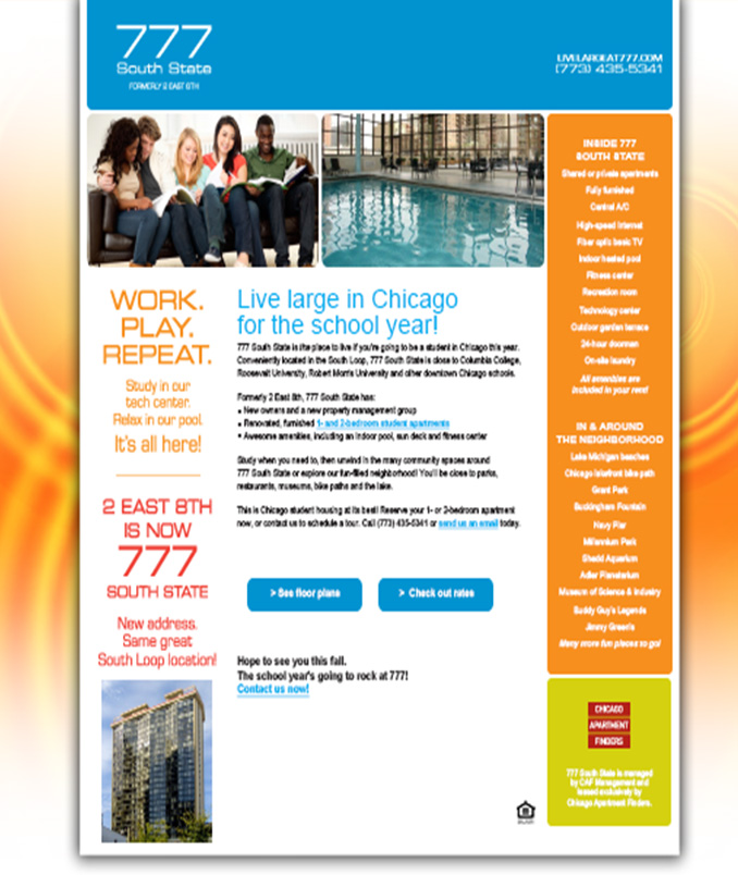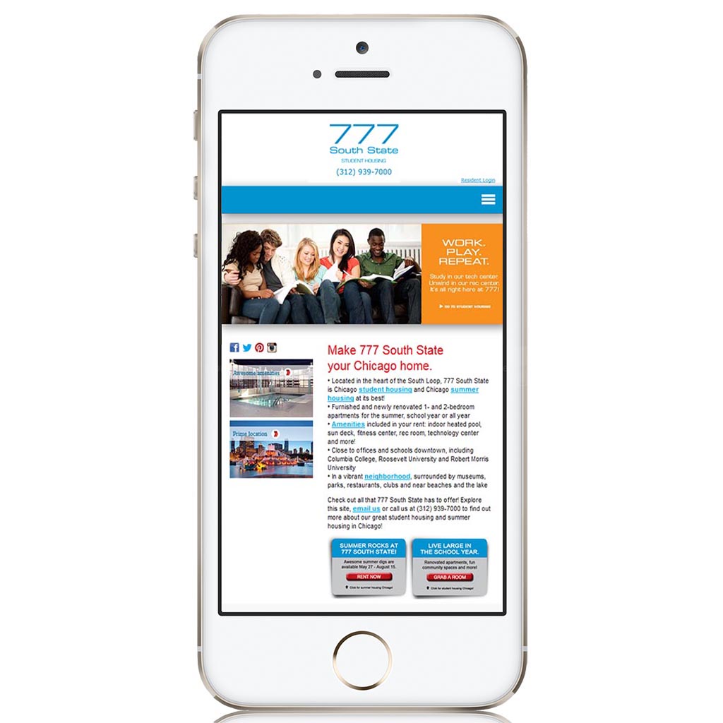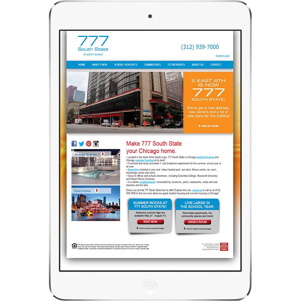 and web design of 777 South state apartment website.